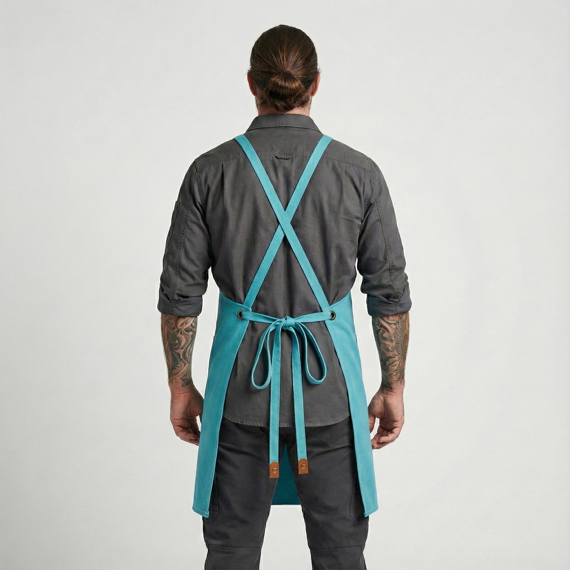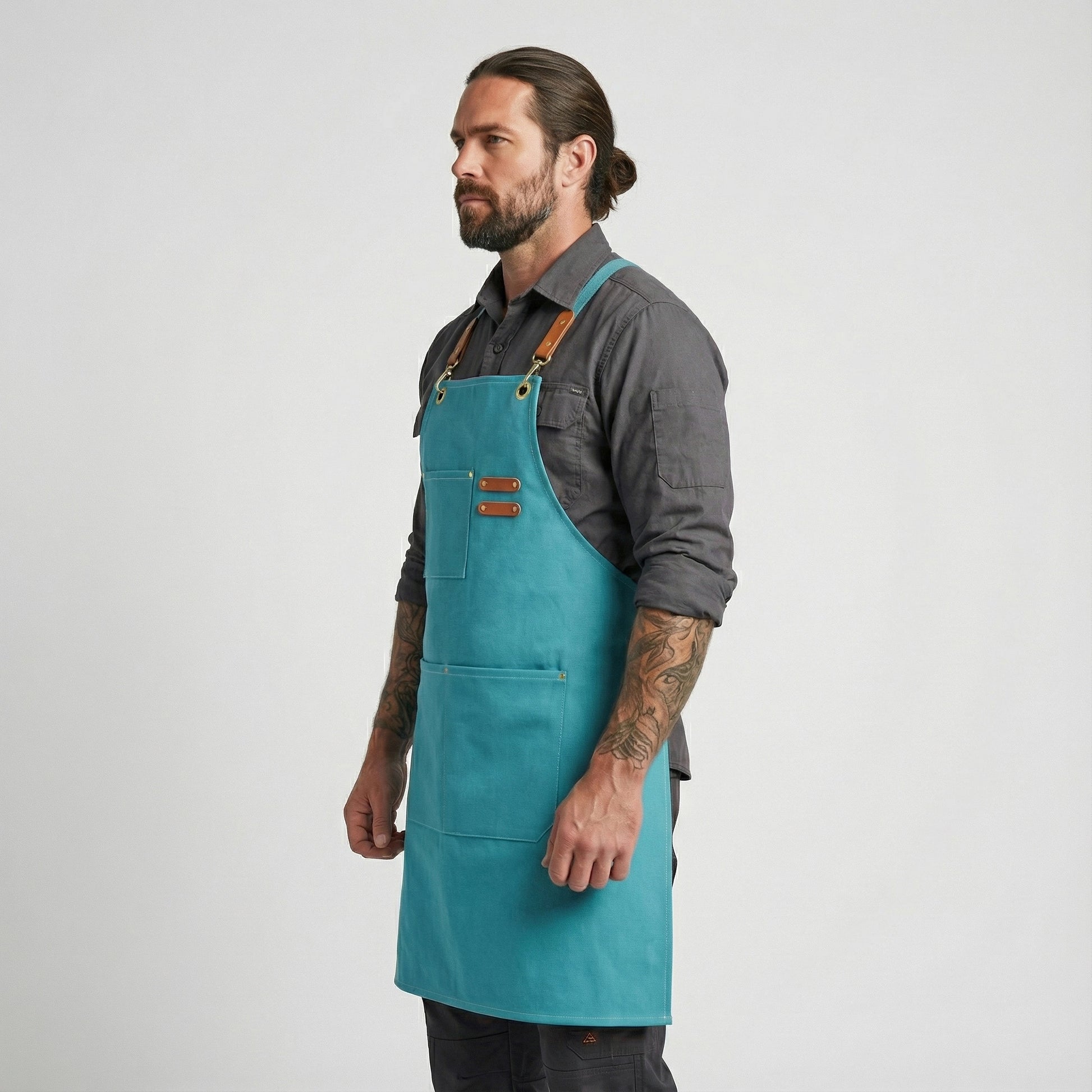 Canvas Apron with Faux Leather Pad 3 Pockets - Aqua Blue